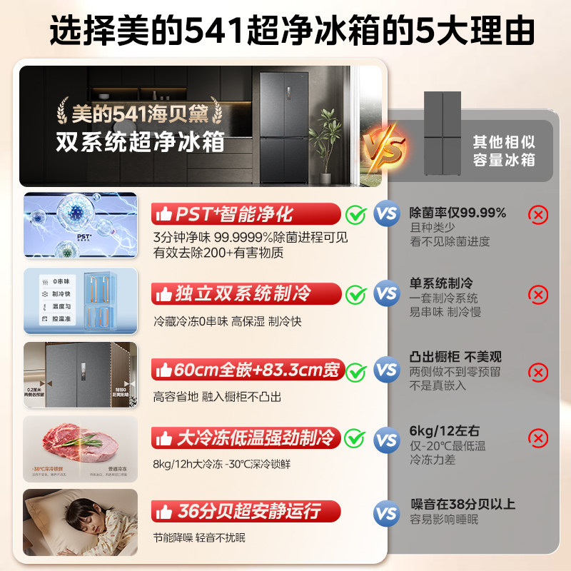 双系统|美的M60小机皇520超薄零嵌入式冰箱家用法式多门四门双开