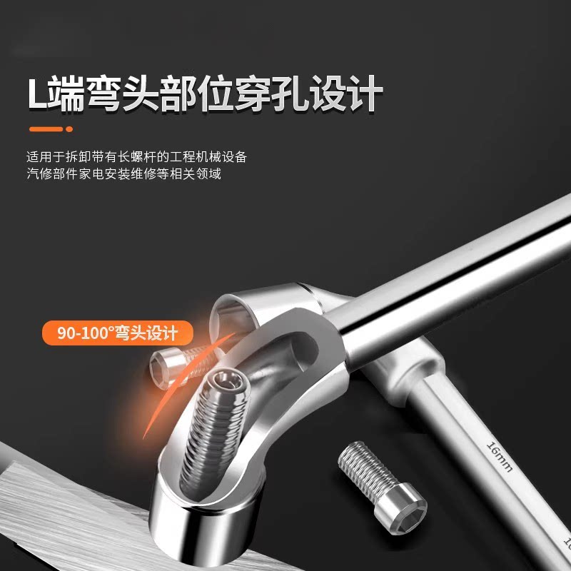 新款多功能L型套筒扳手工具六角7字型弯头双头穿孔轮胎扳手6-24mm