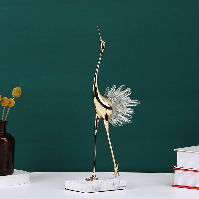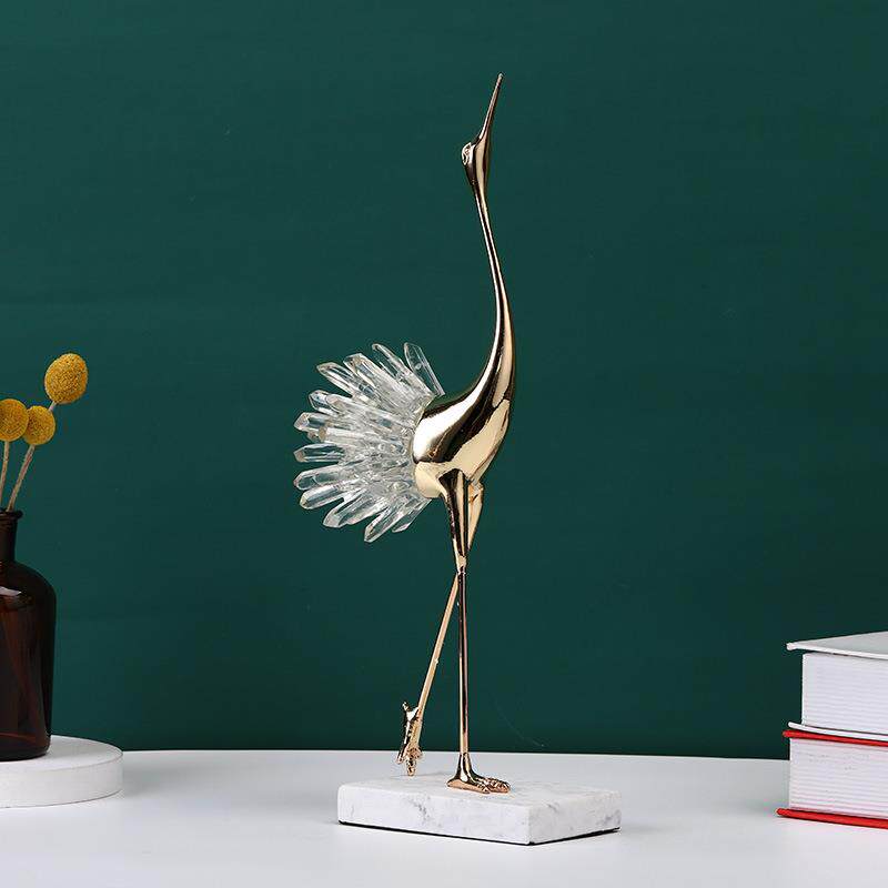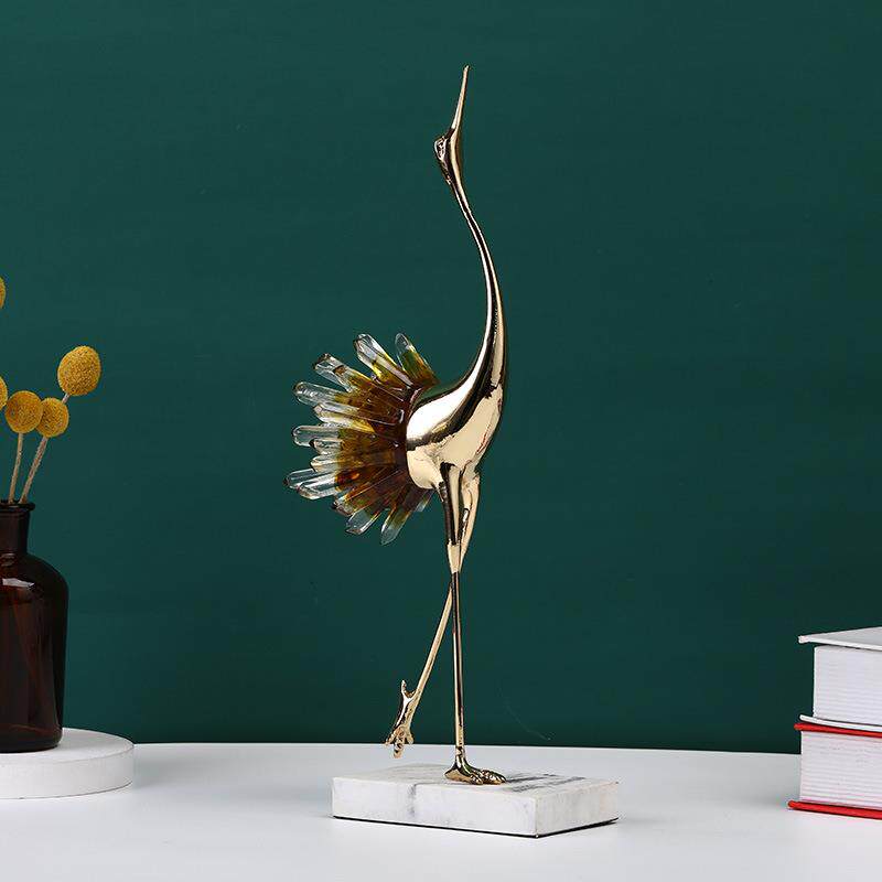 新中式软装家居客厅电视柜轻奢透明水晶仙鹤摆件金属工艺品包邮