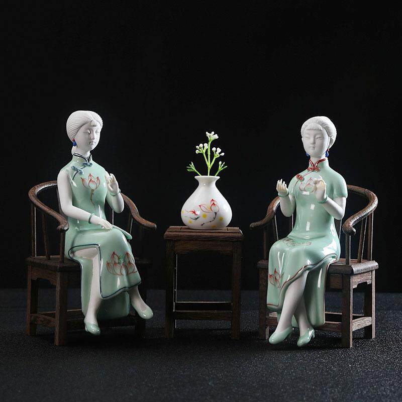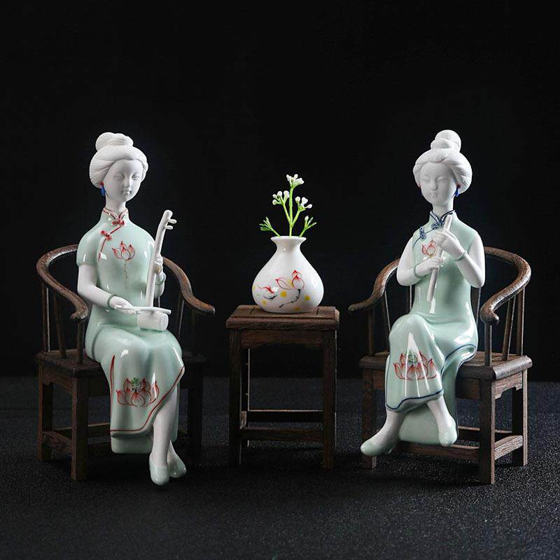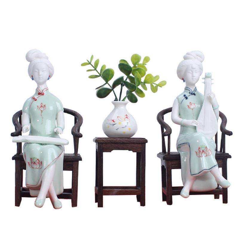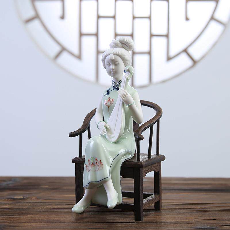 古典陶瓷人物仕女摆件德化陶瓷创意工艺品软装饰品玄关酒柜摆件