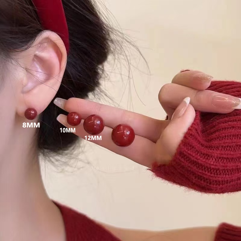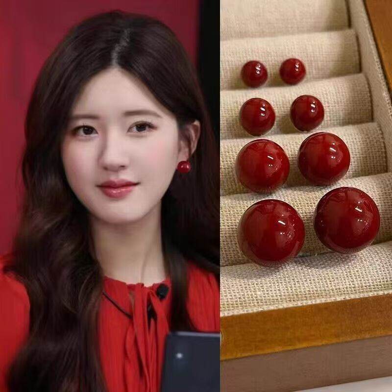 显白安可拉红珍珠耳钉女复古设计感耳环新款INS高级感轻奢耳饰