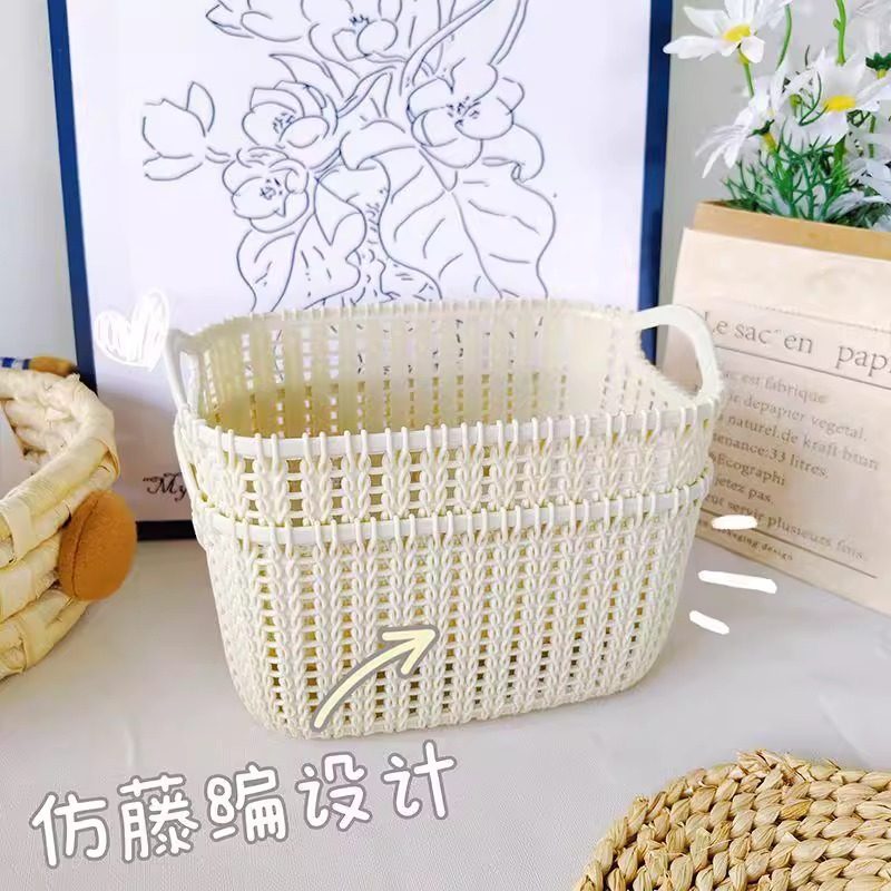 仿藤编收纳篮大容量桌面收纳盒学生宿舍杂物整理盒简约收纳篮子