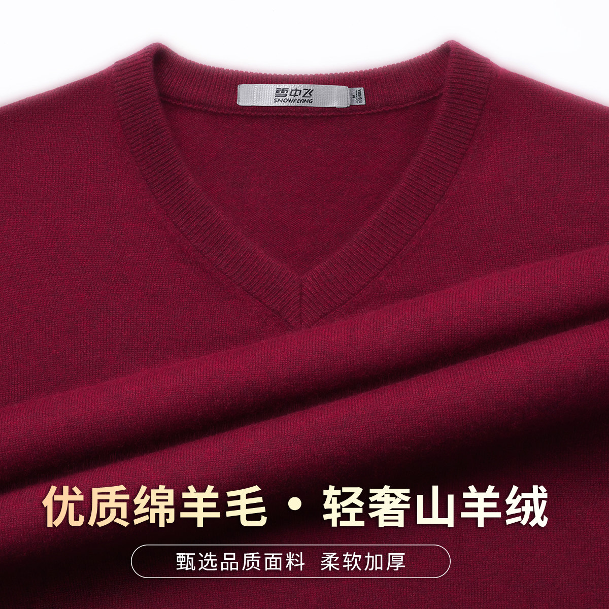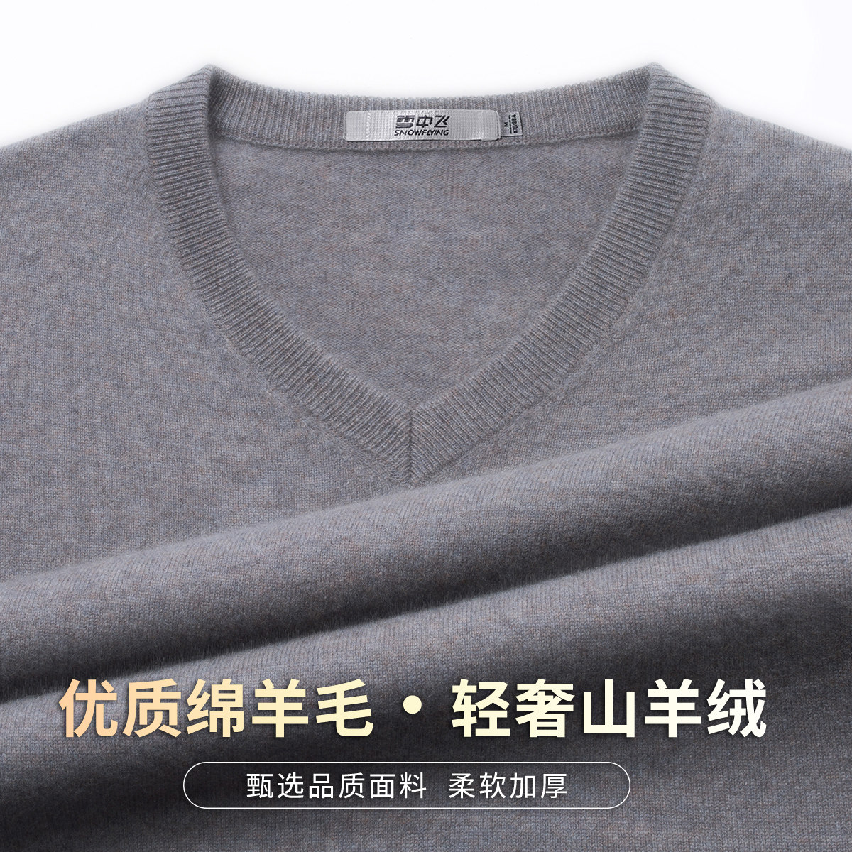雪中飞【30山羊绒 黄金羊毛】高档V领羊绒衫男秋冬温暖百搭毛衣W