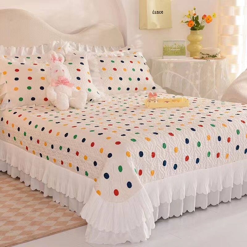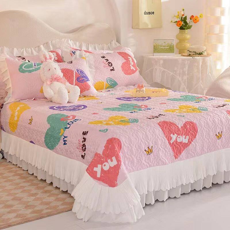 韩系纯棉床盖三件套柔软亲肤加厚全棉床单四季通用榻榻米炕盖防滑