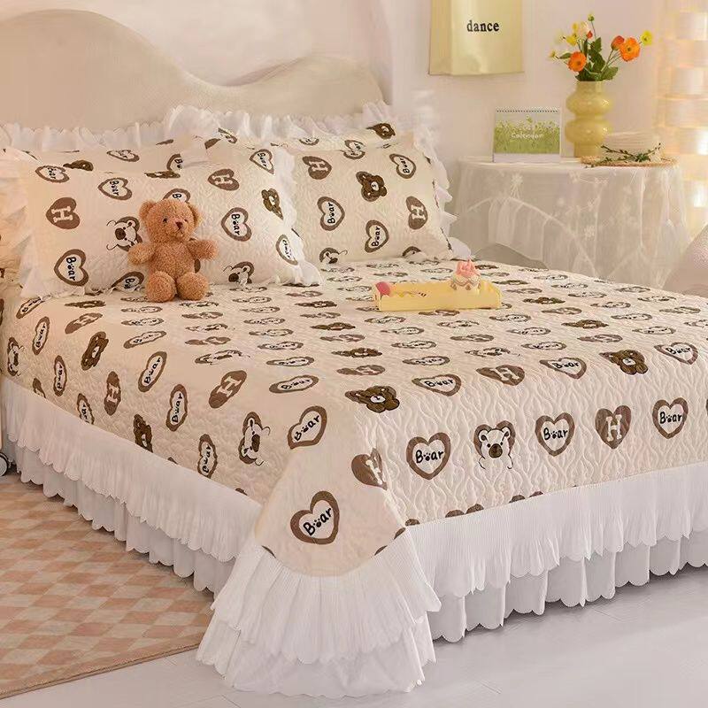A类水洗棉床盖单件四季通用榻榻米夹棉加厚亲肤学生床单罩三件套