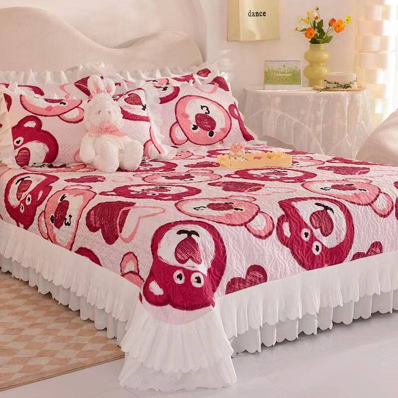 韩版全棉床盖三件套纯棉绗缝夹棉防滑纯棉床单四件套四季通用