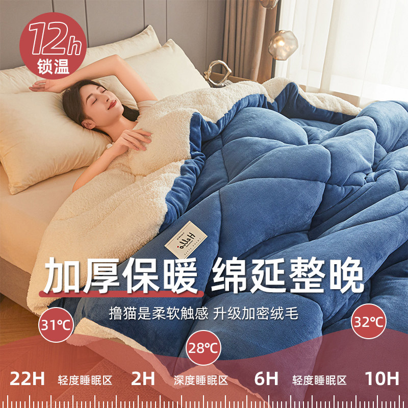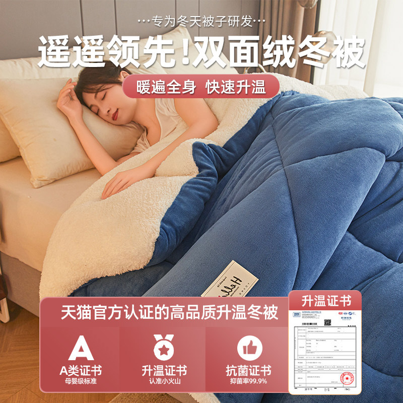 A类母婴级双面加绒加厚保暖冬被 蓄热锁温