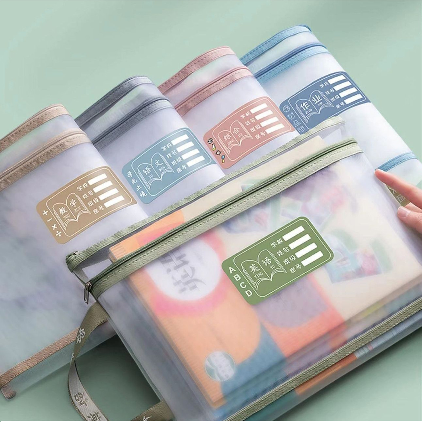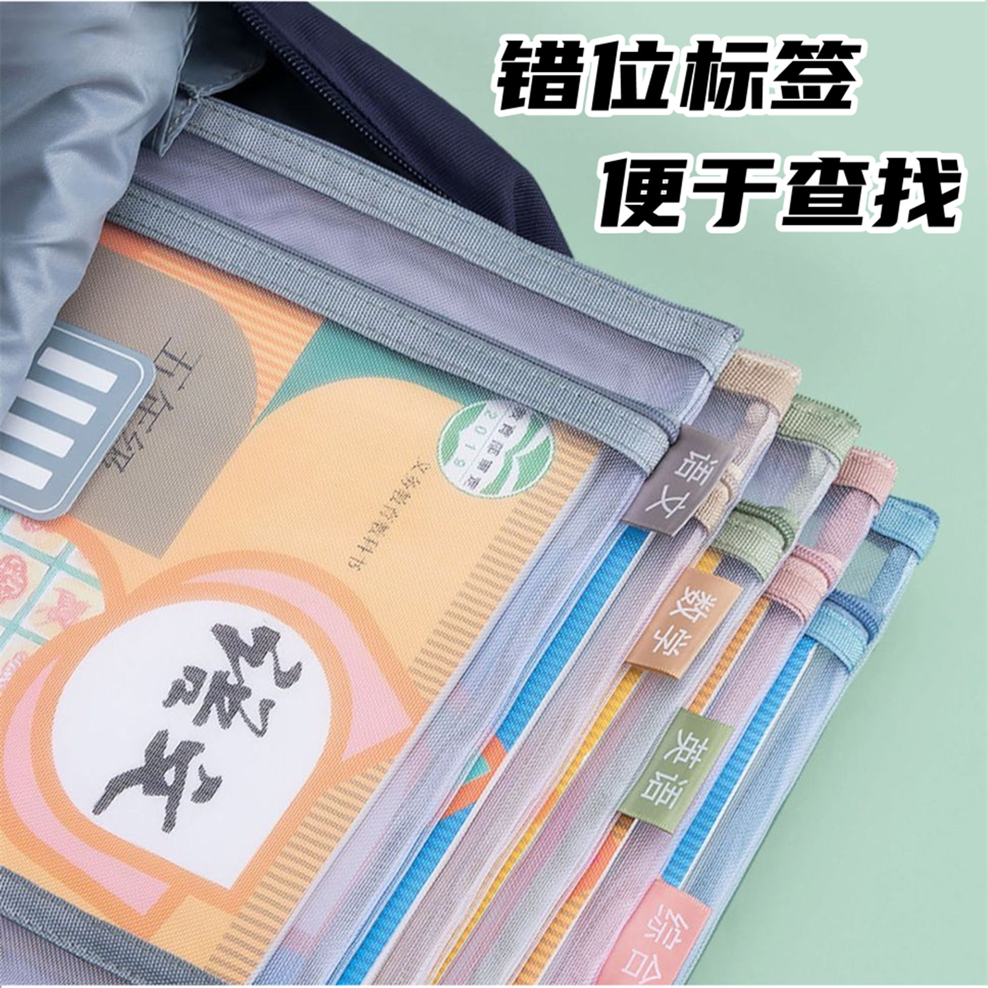 双层科目分类袋文件袋学生课本试卷网纱拉链收纳袋作业袋大容量