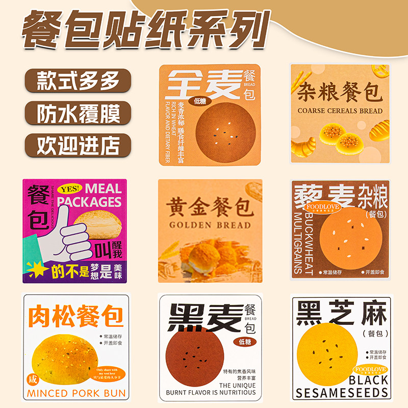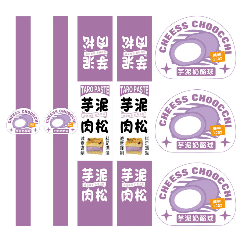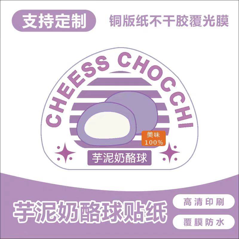 定制芋泥奶酪球贴纸芋泥肉松不干胶标签铜纸版网红贴纸封口贴肉松餐包全麦低糖食品榴莲酸奶全麦杂粮冰面包