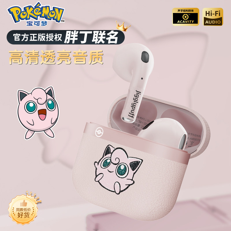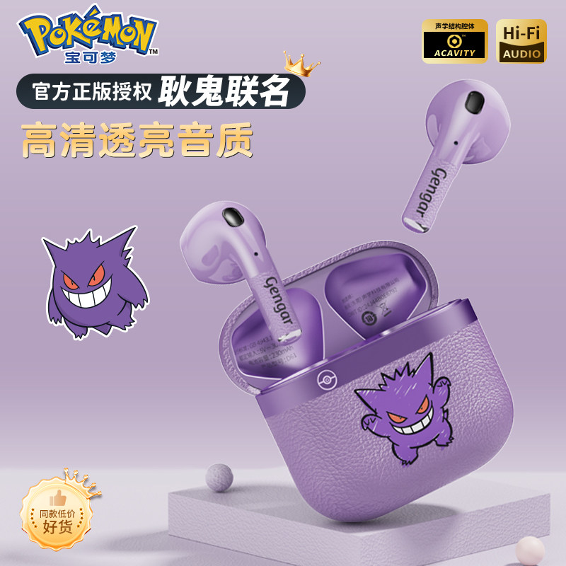 宝可梦D61蓝牙耳机耿鬼&胖丁情侣款无线降噪男女运动游戏半入耳式