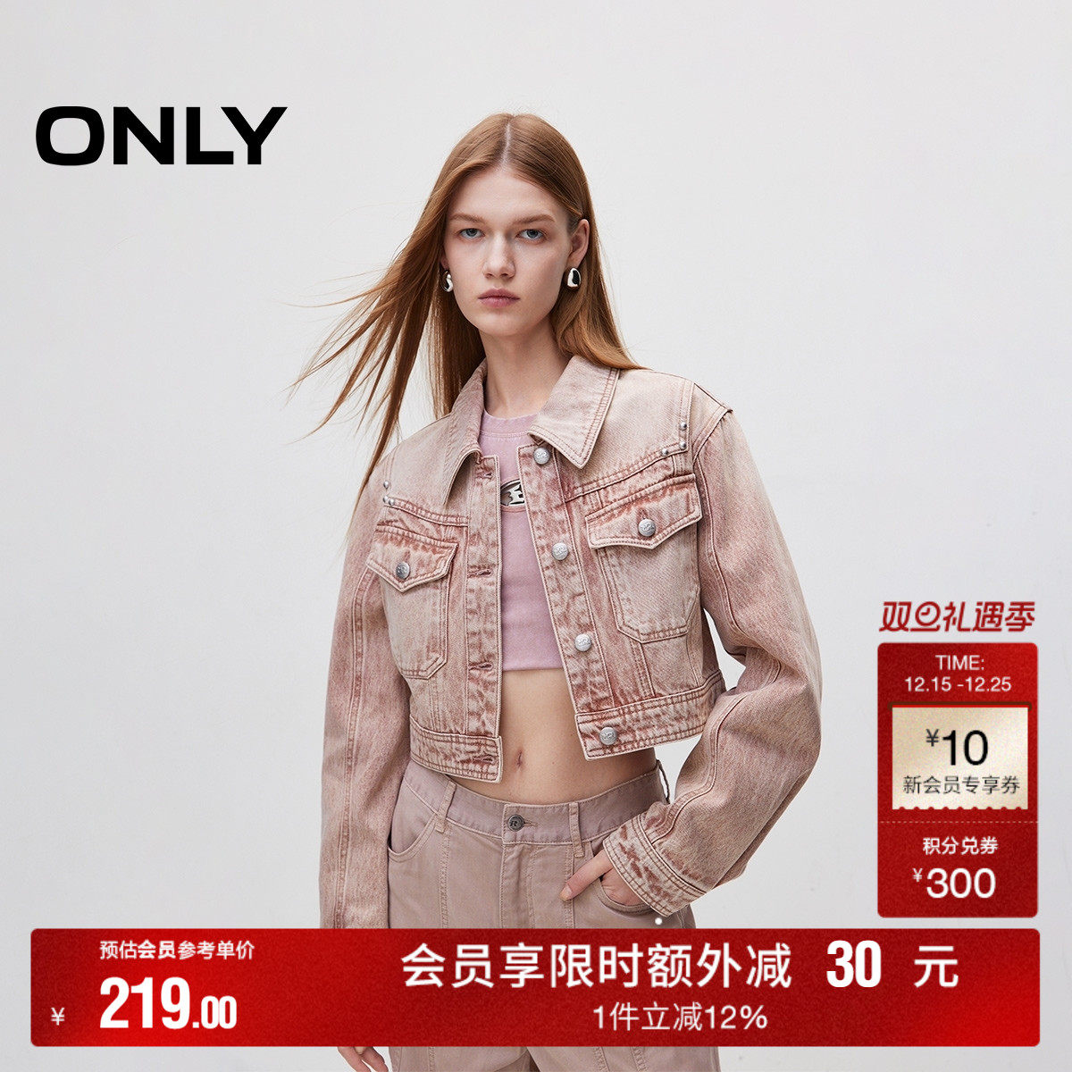 【ONLY奥莱】秋冬活力俏皮粉色水洗短款长袖夹克牛仔外套女