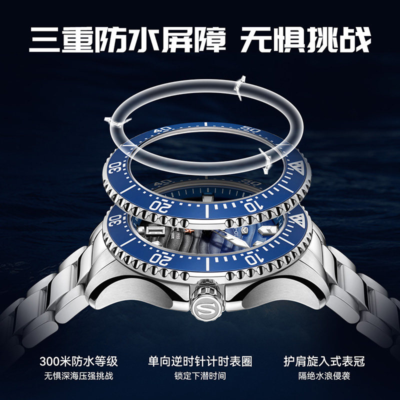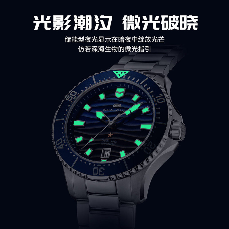海鸥表手表海洋系列波浪纹潜水机械表夜光运动男士自动机械表1218