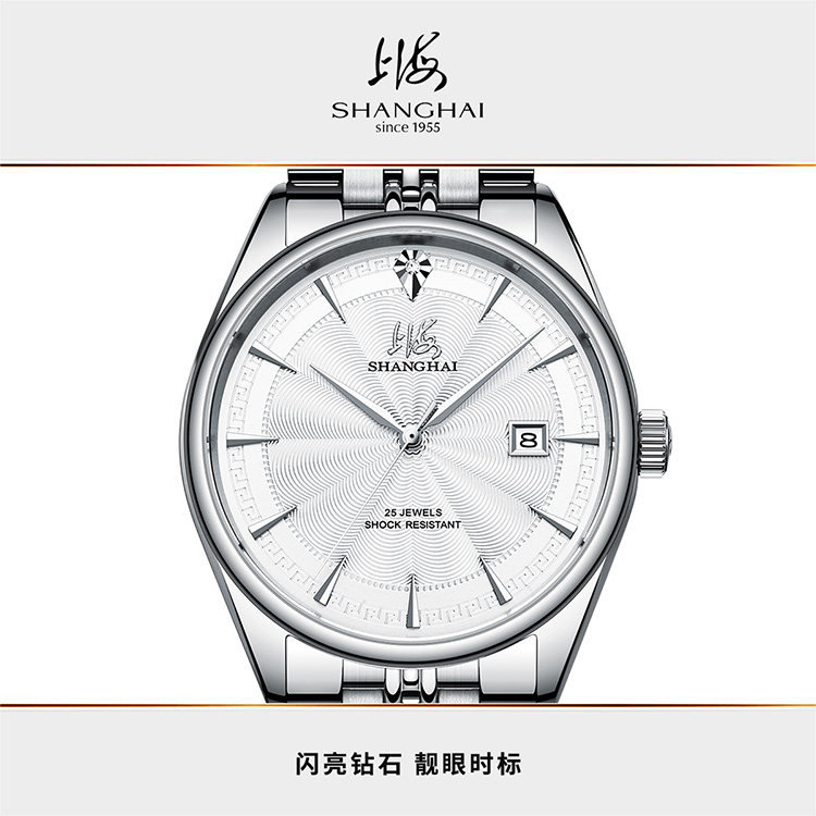 上海手表男女款国民系列纪念款真钻钢机械腕表850
