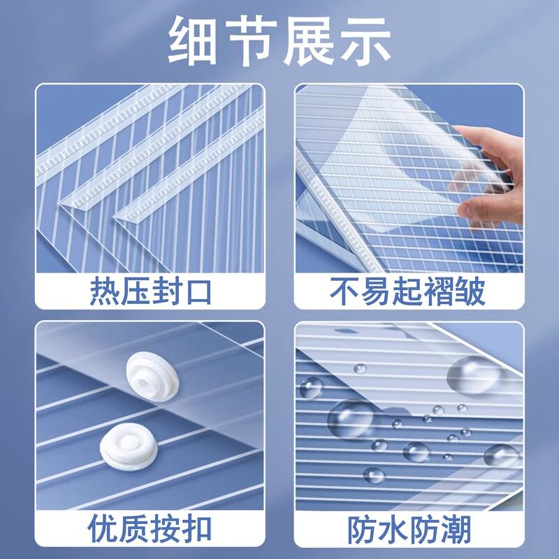 齐心透明a4文件袋防水高中生试卷加厚收纳袋塑料档案袋学生用按扣大容量票据作业产检纽扣资料袋办公用品
