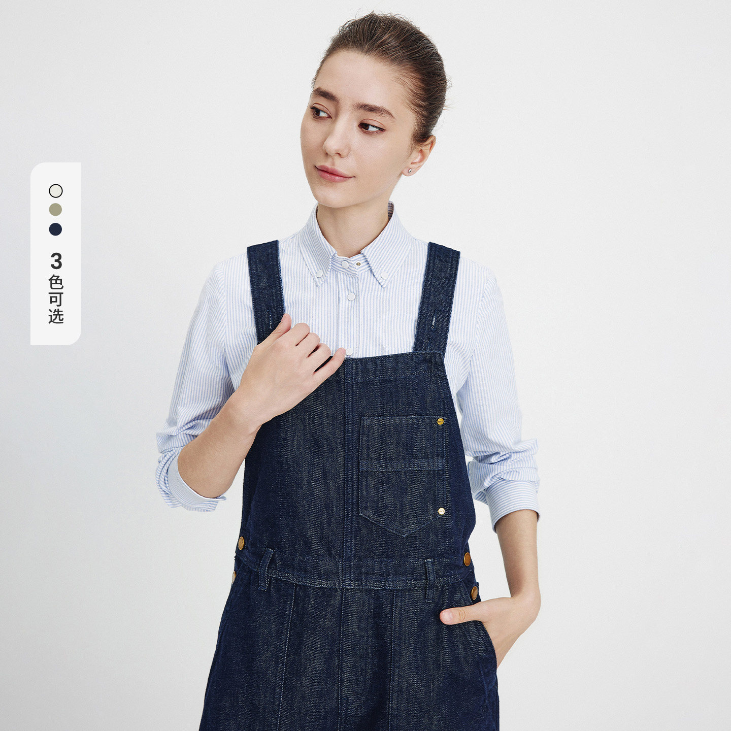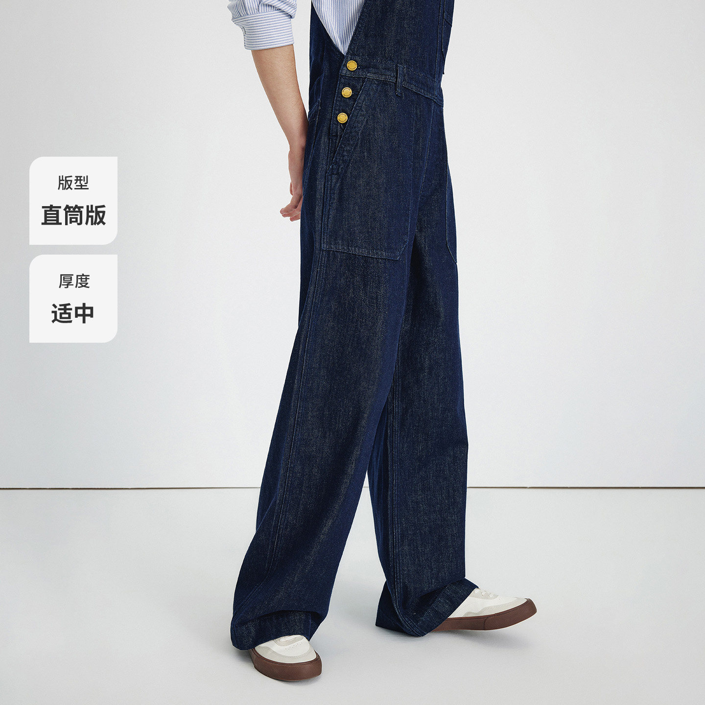 Navigare意大利小帆船纯棉牛仔背带裤女2025秋季新款通勤直筒长裤