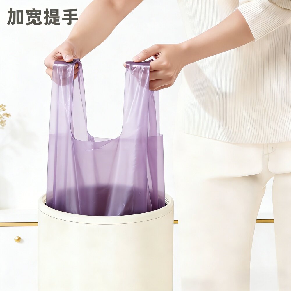 紫色加厚垃圾袋背心式中号家用厨房手提马甲袋塑料袋8升15升桶用