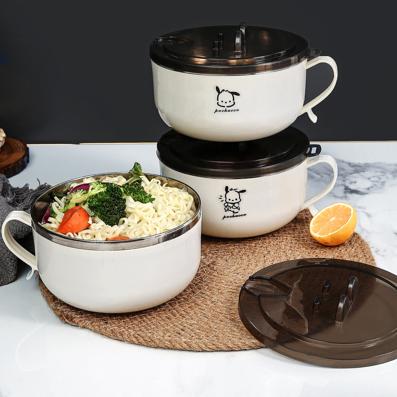 304不锈钢泡面碗日式双耳带盖汤碗大容量学生宿舍麻辣烫专用餐具