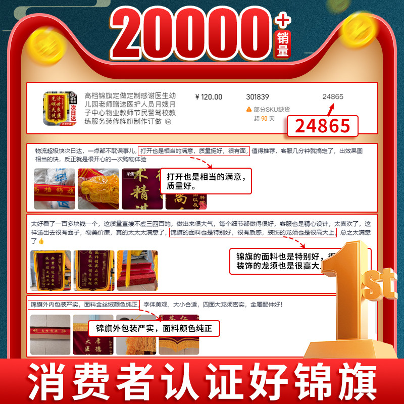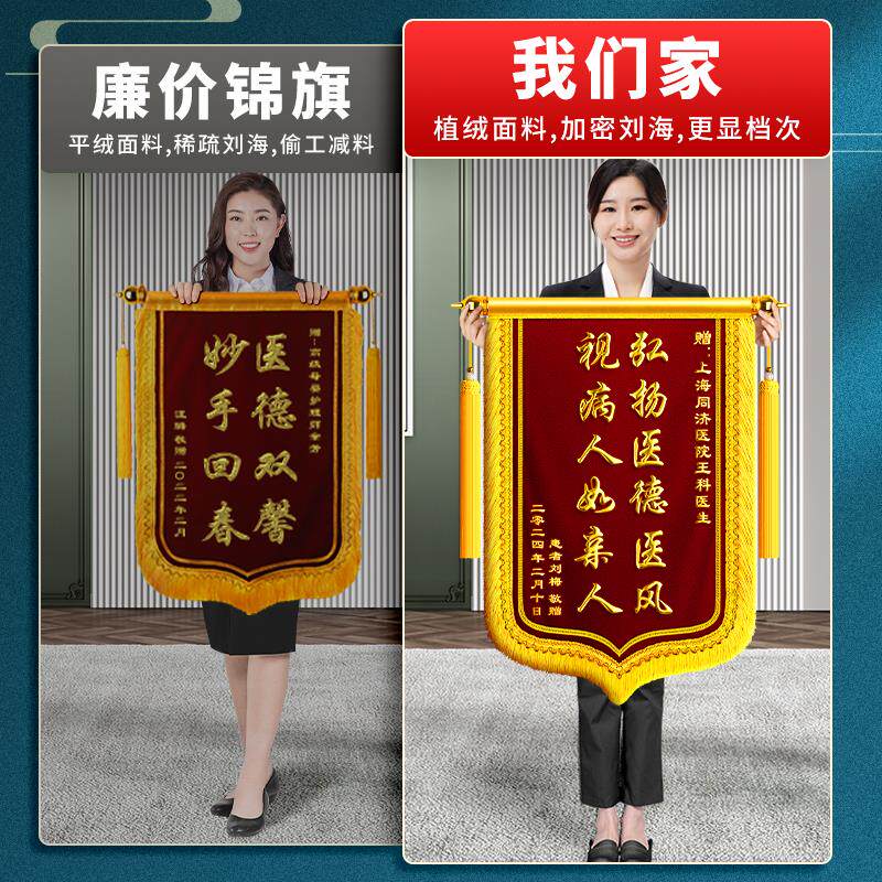 锦旗定做定制感谢医生幼儿园老师赠送护士月嫂月子中心物业教师民警驾校教练服务装修旌旗制作订做金丝绒锦旗