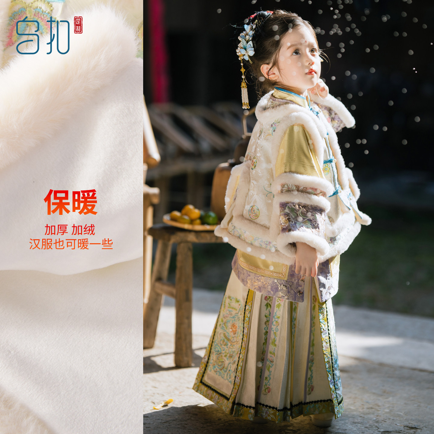 乌扣.惊鸿 女童冬季套装儿童中国风古装改良冬清汉女服装加厚冬装