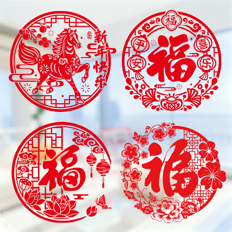 2026年新款创意福字窗花贴玻璃贴门贴马年新年过年窗户静电装饰品