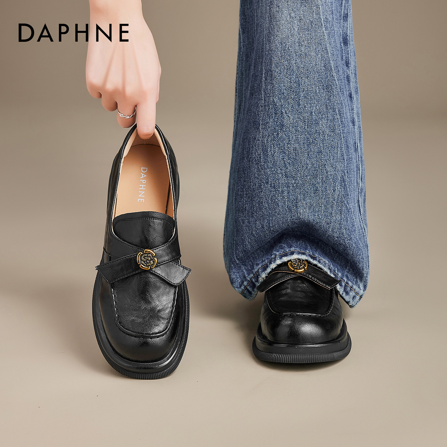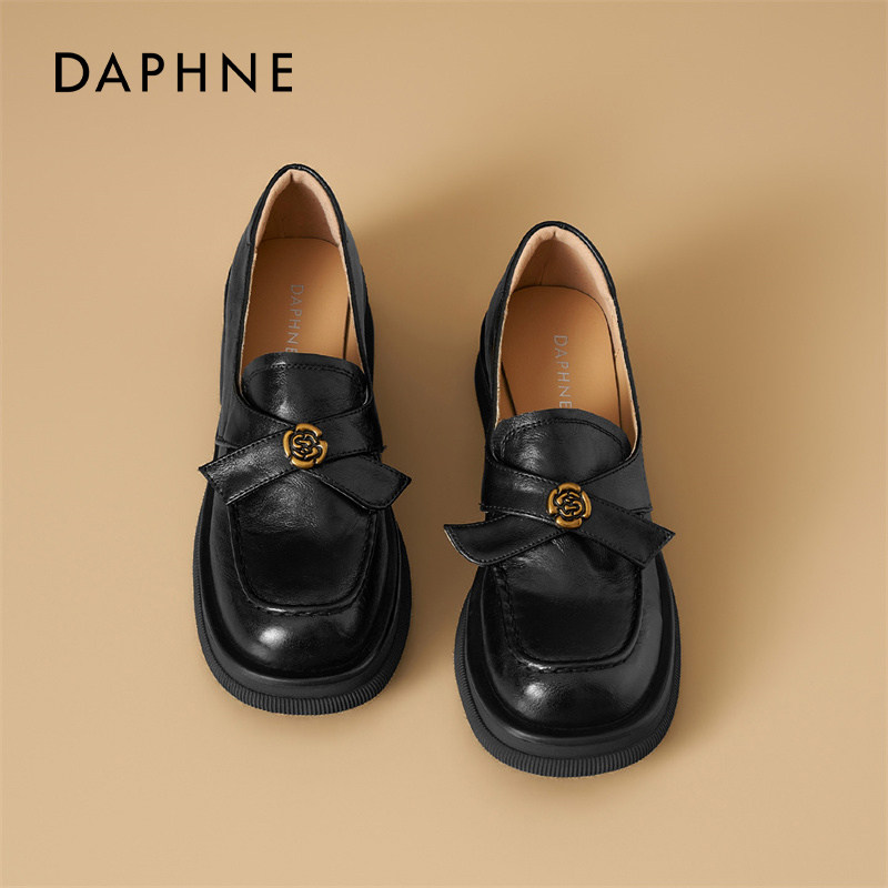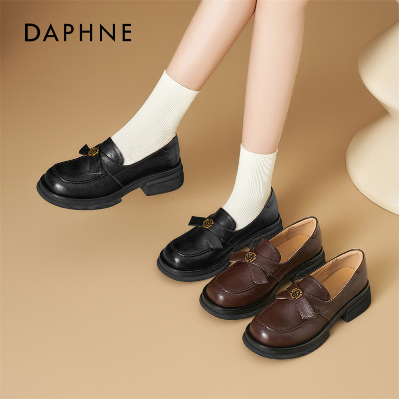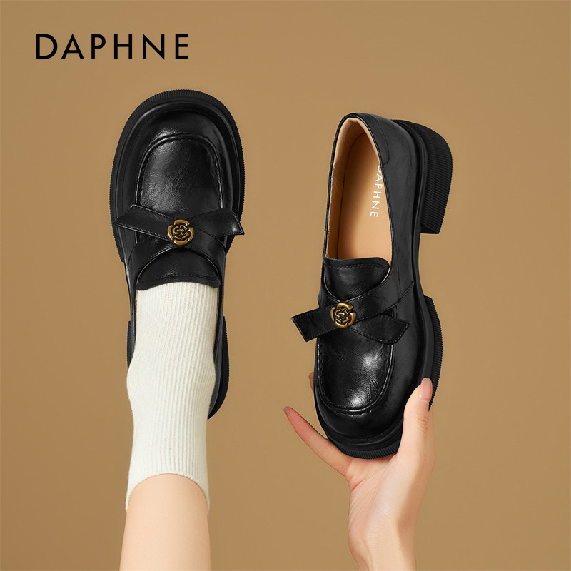 达芙妮一脚蹬乐福鞋女厚底2026新款配裙子英伦风单鞋山茶花小皮鞋