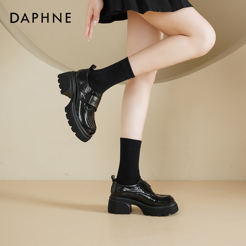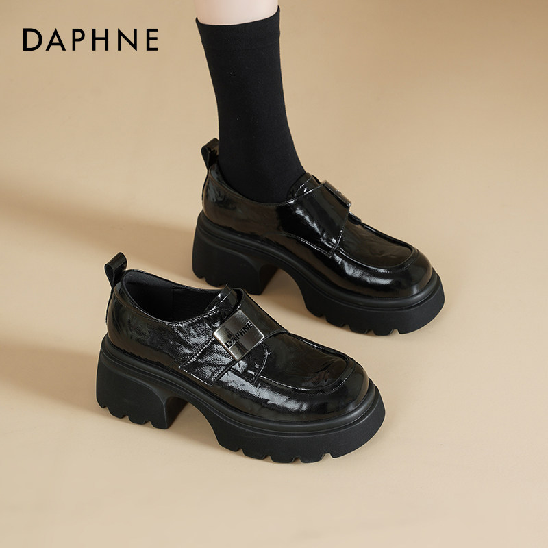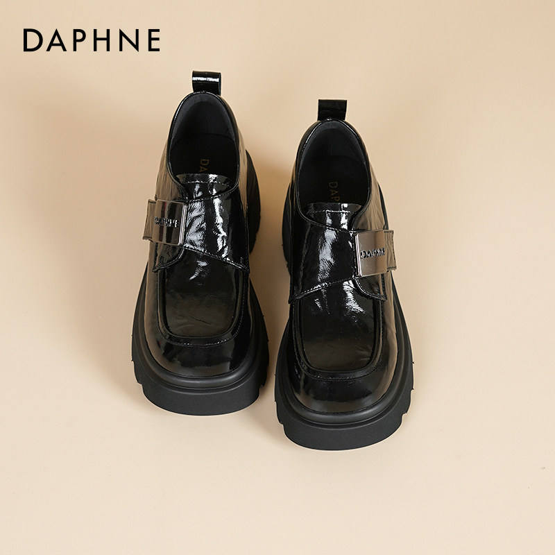 达芙妮厚底乐福鞋女款2026新款春季增高单鞋英伦风黑色小皮鞋女款