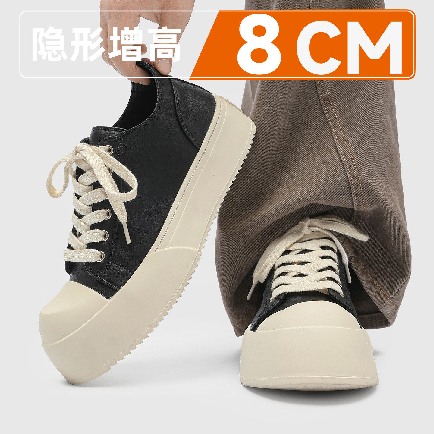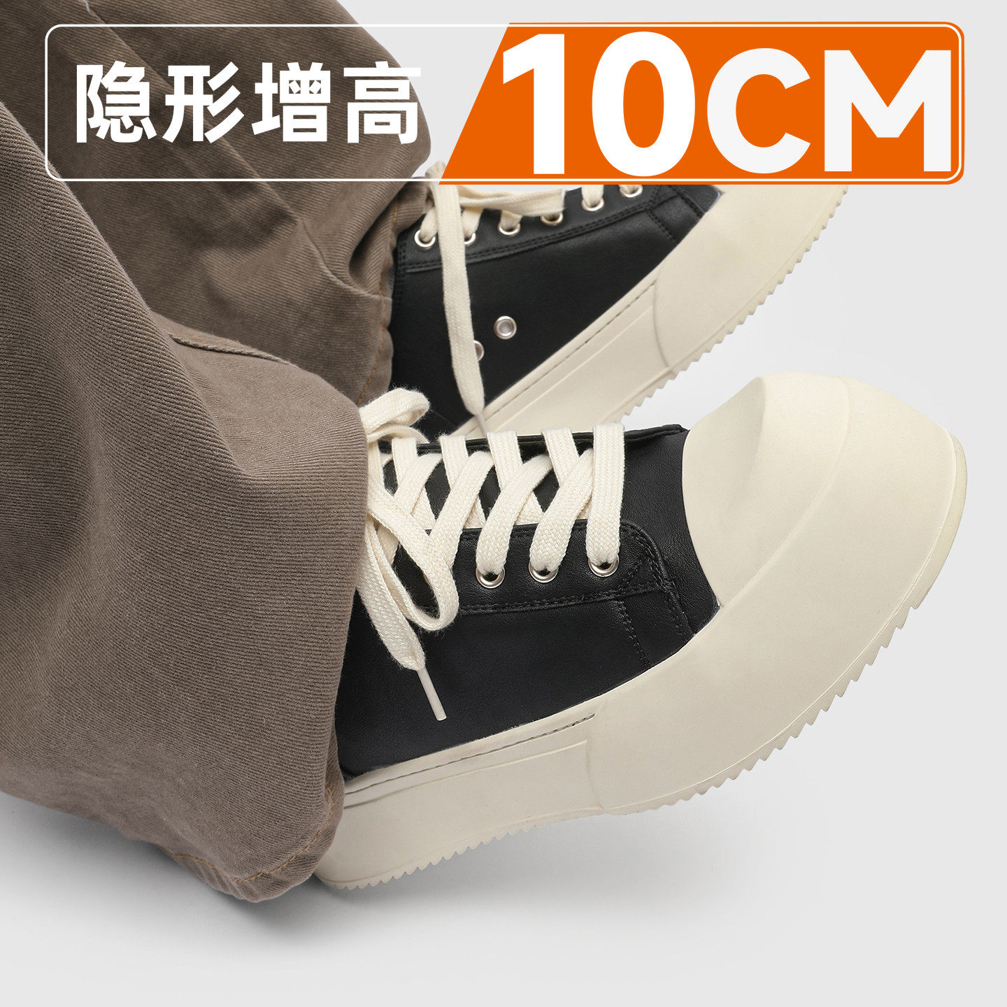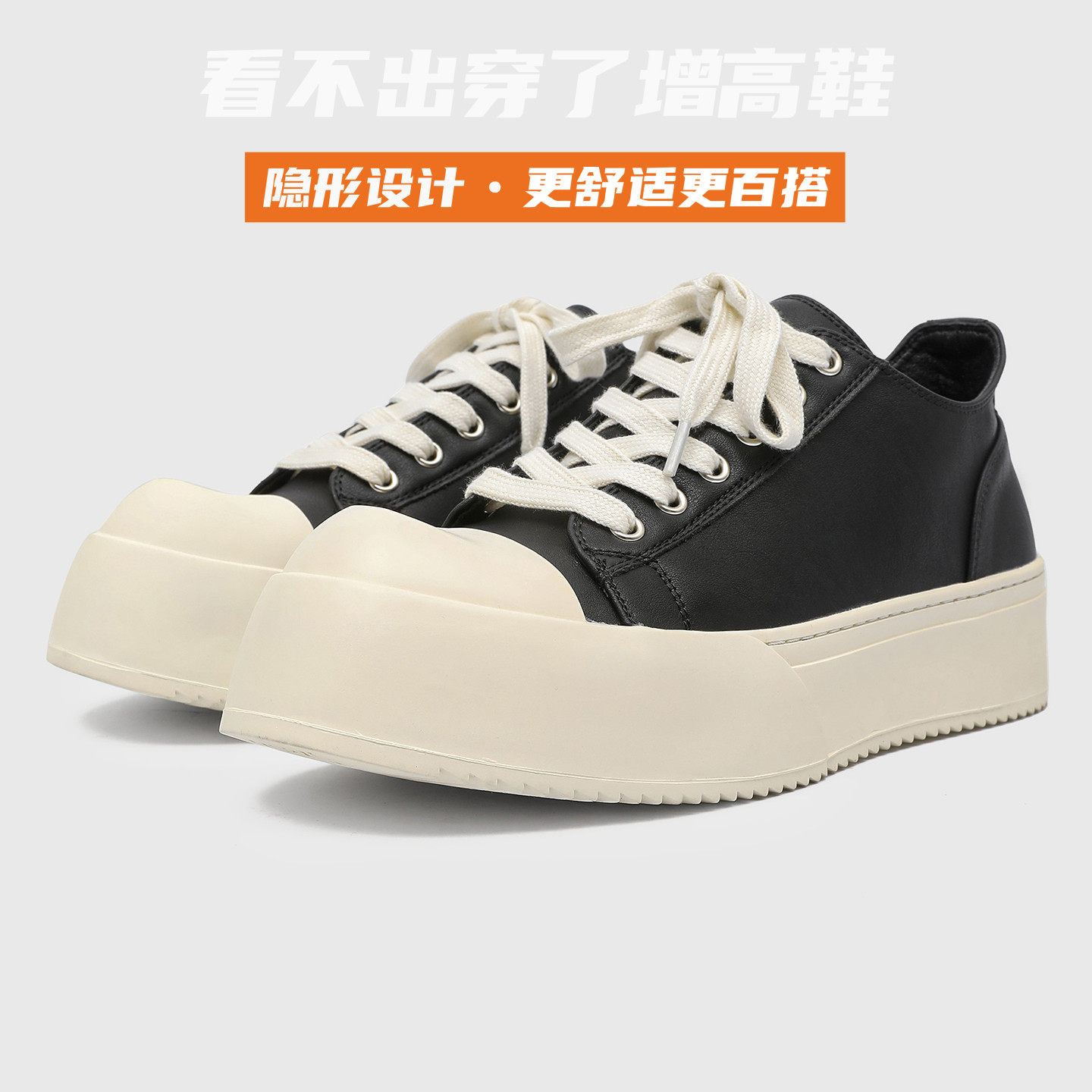 大头奶香底板鞋男隐形内增高10cm高街厚底德比鞋潮男通勤休闲皮鞋