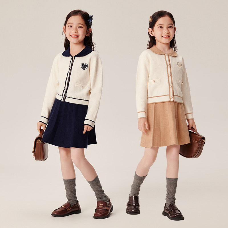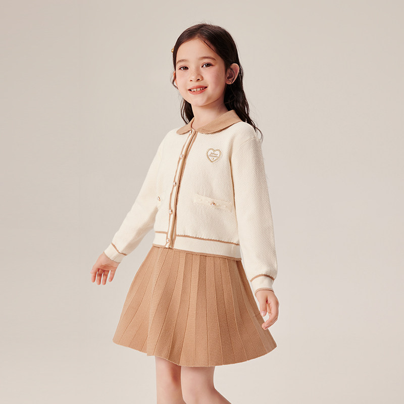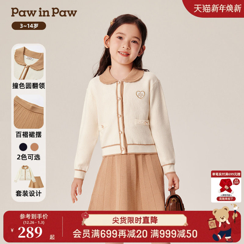 PawinPaw卡通小熊童装秋冬女童甜美毛织学院风套装裙