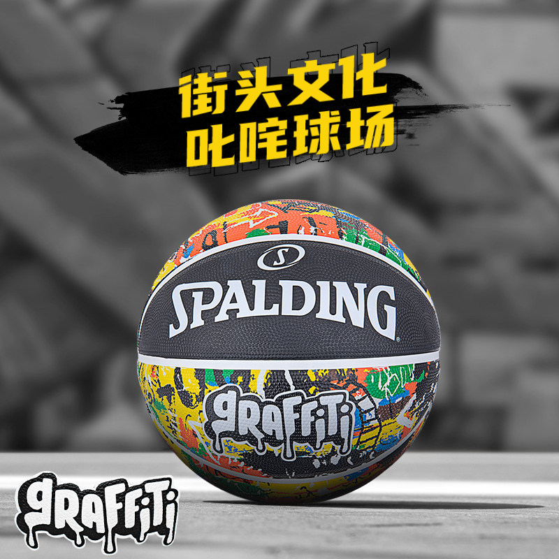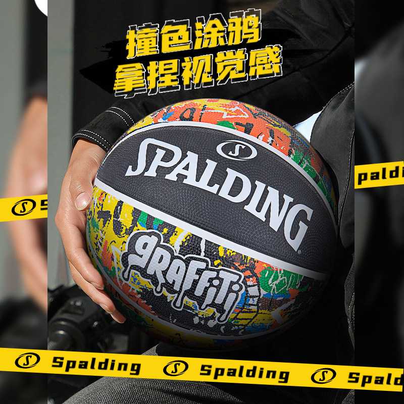 Spalding斯伯丁官方黑白涂鸦7号标准橡胶室外用专业篮球成人礼物