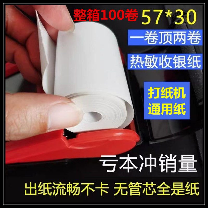 手刷机打印纸无管芯热敏纸57x30个人商家收款机手拿机通用小票纸