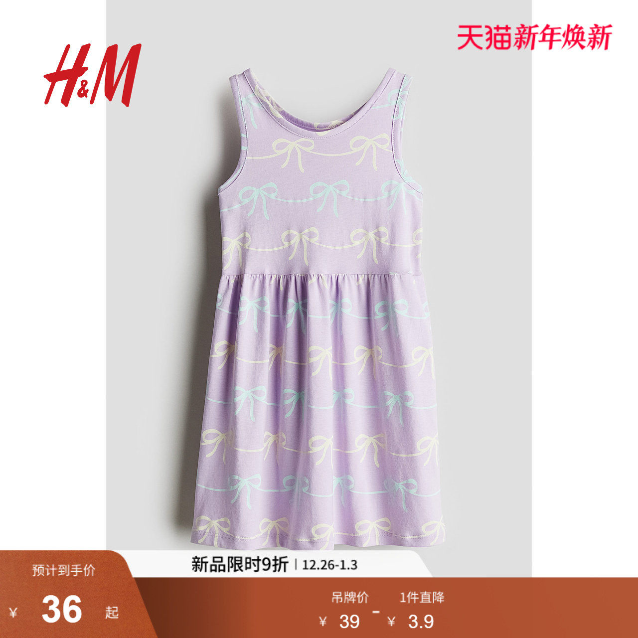 HM童装儿童女童裙子2025冬季新款洋气无袖圆领印花微喇裙1157735