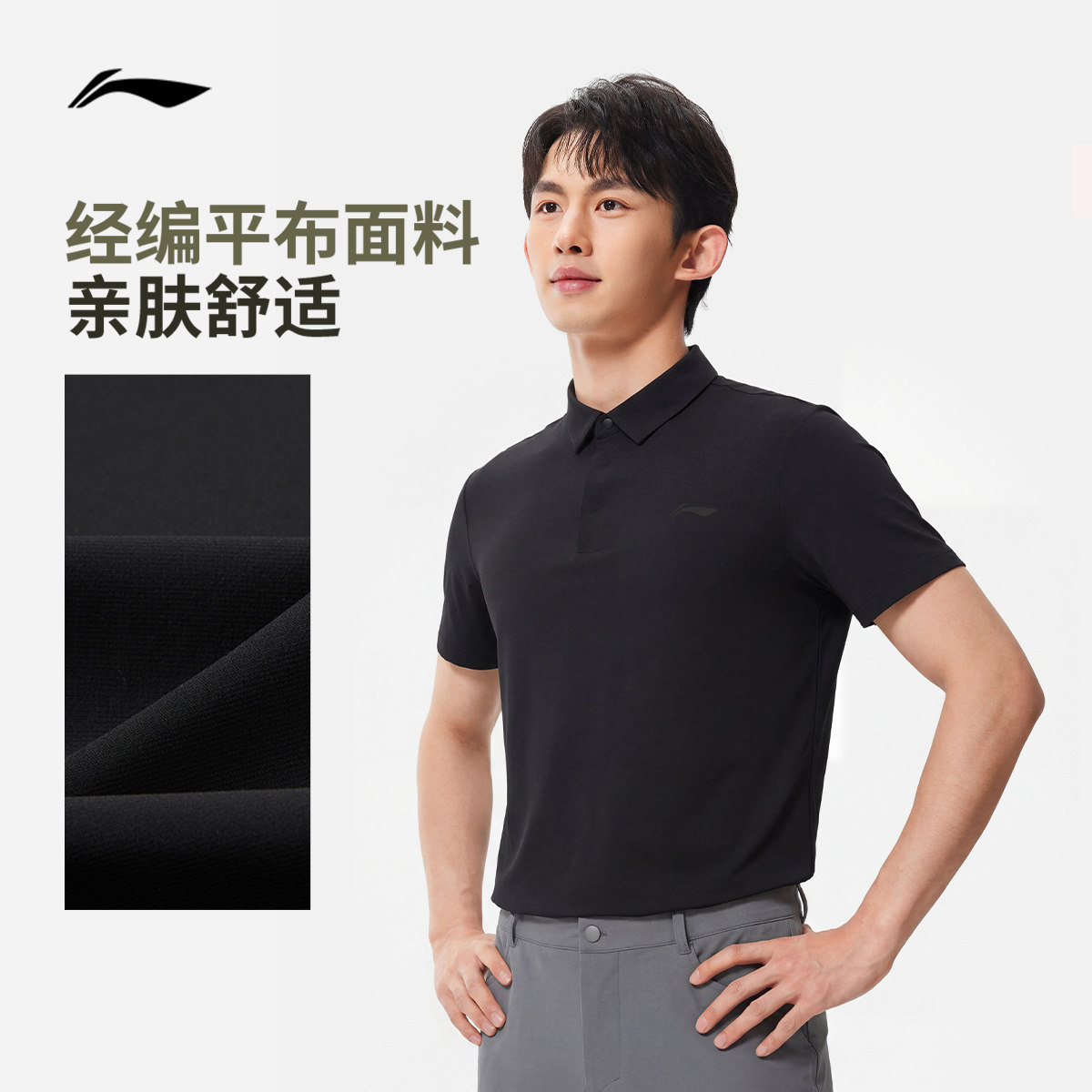 李宁冰丝POLO衫男春夏2026新款商务男装防晒T恤翻领上衣运动短袖