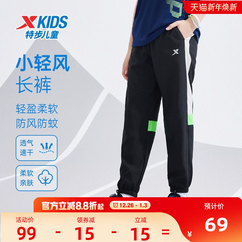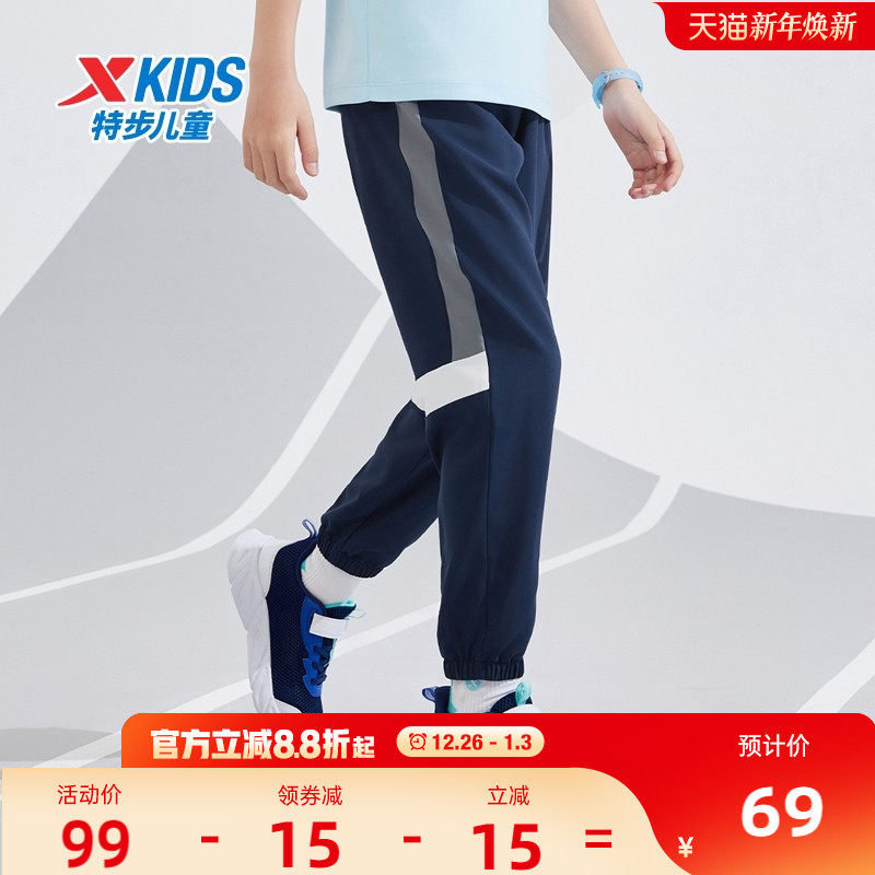 特步儿童拼接速干裤2025夏季新款童装男童运动裤夏装儿童长裤裤子