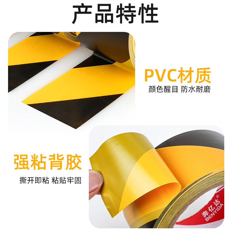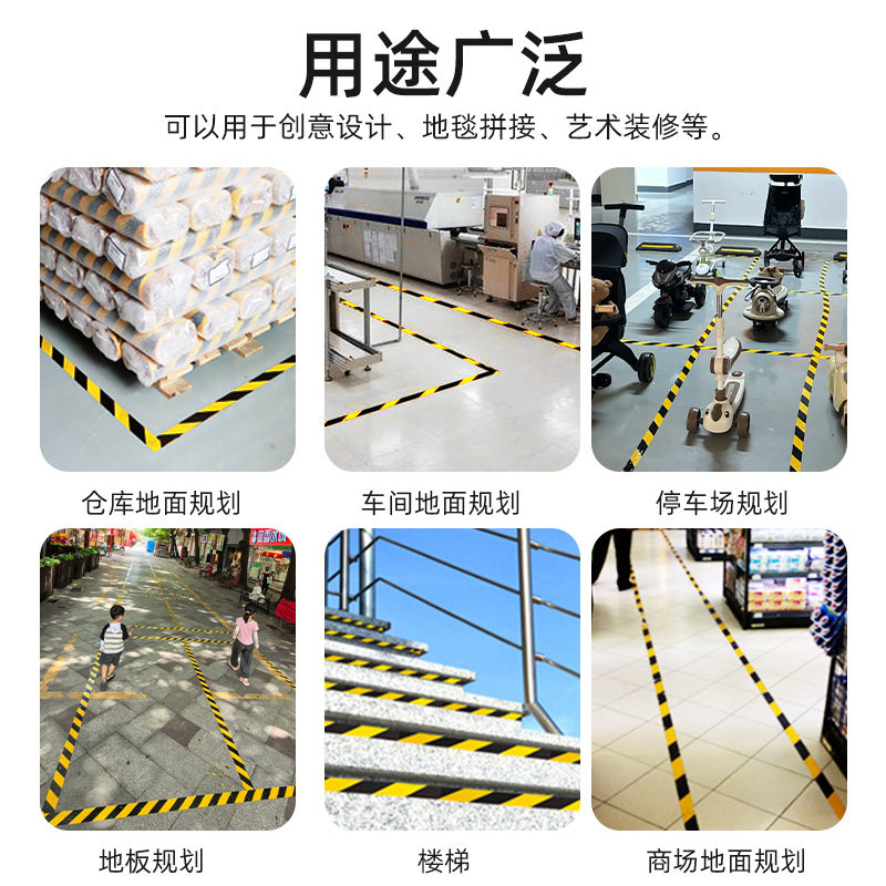 警示胶带PVC黑黄地标贴仓库车间停车场车位划分定位贴消防分区安全通道斑马线警戒带隔离带耐磨划线地板胶带