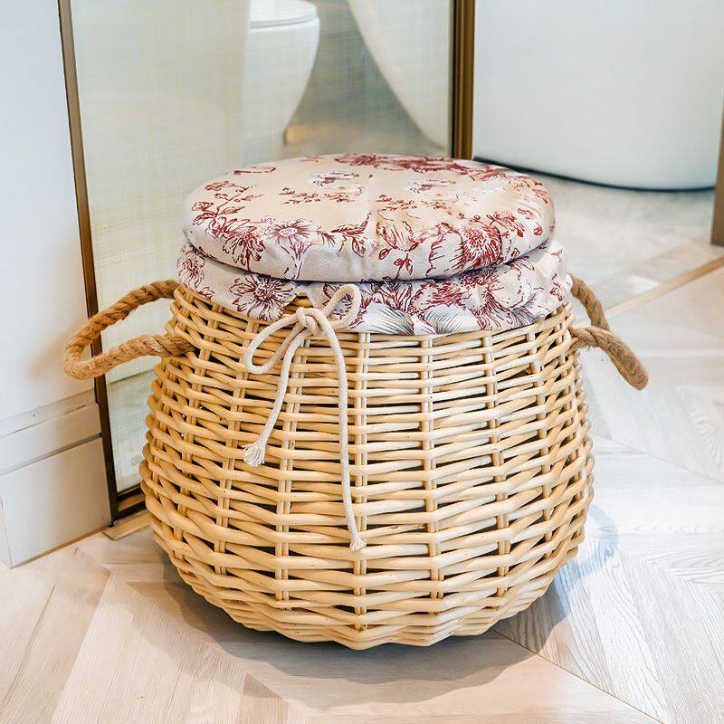 藤编收纳凳子多功能脏衣篮圆凳沙发换鞋凳长方脏衣篓家用客厅椅子