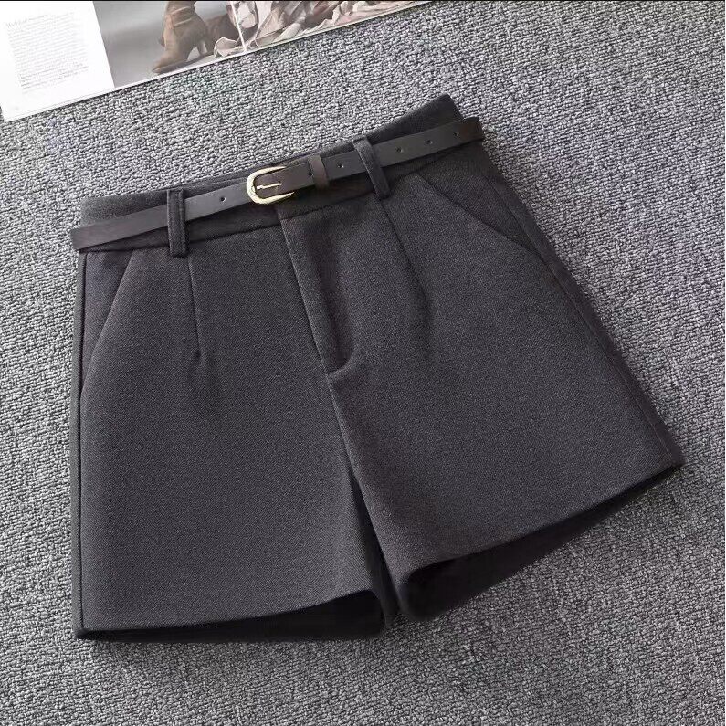 秋冬季毛呢靴裤阔腿裤女装秋装高腰显瘦时尚休闲百搭外穿短裤