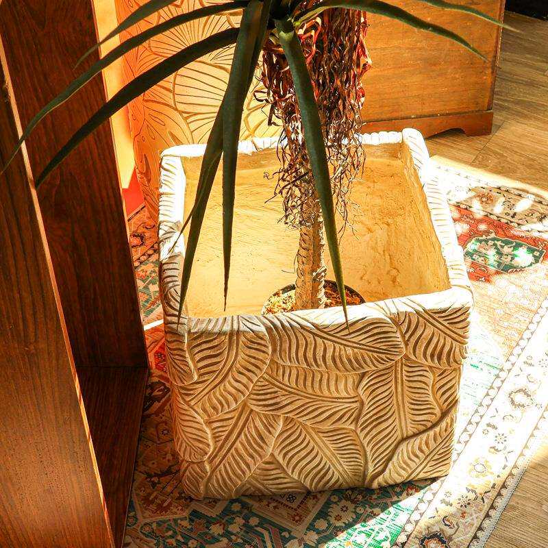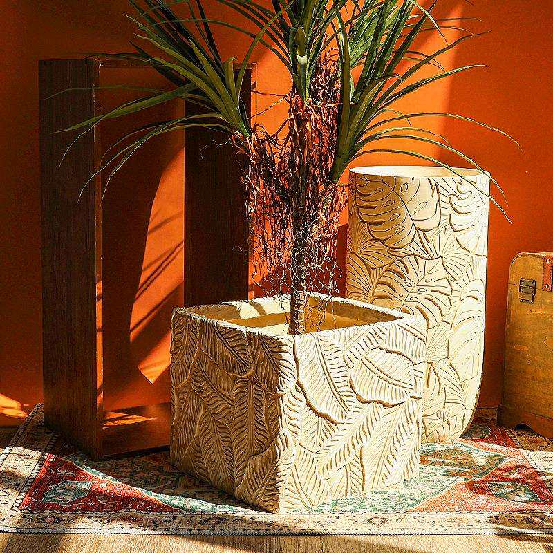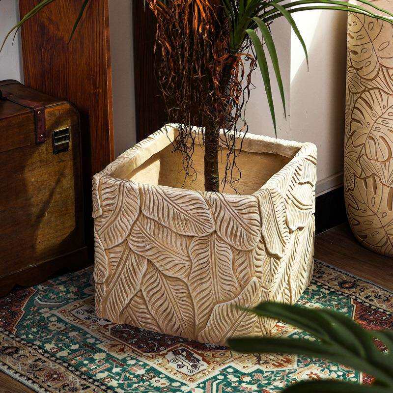 室外极简镁泥花盆方形轻奢绿植盆北欧风落地特大花器客厅装饰摆件