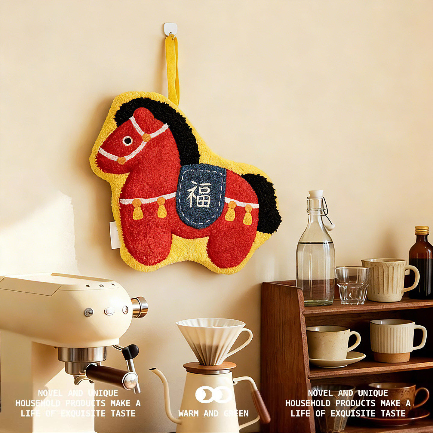 新年有福擦手巾厨房吸水手帕毛巾新中式擦手布马年手绢挂式卫生间