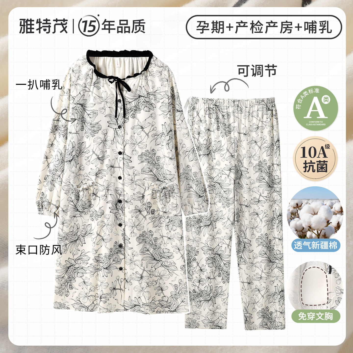 【送胸垫】孕妇春夏秋哺乳睡衣产后月子孕妇产房待产连衣裙2件套