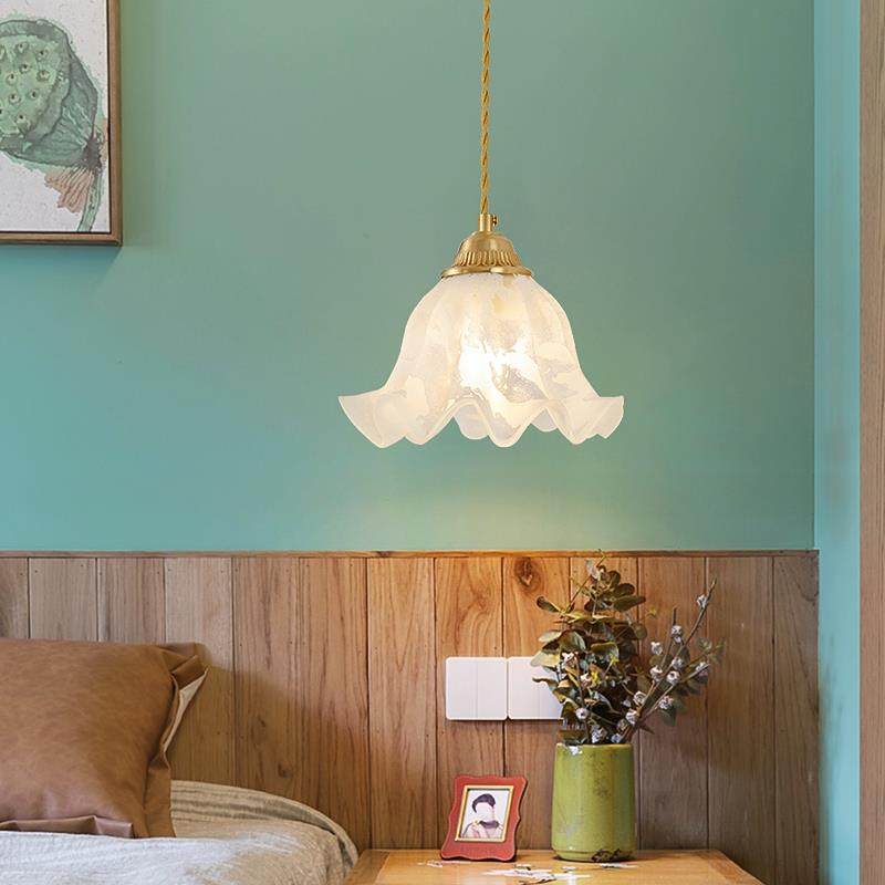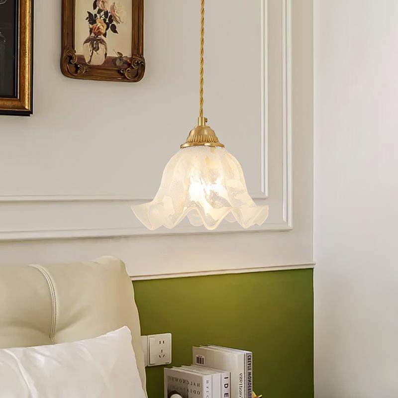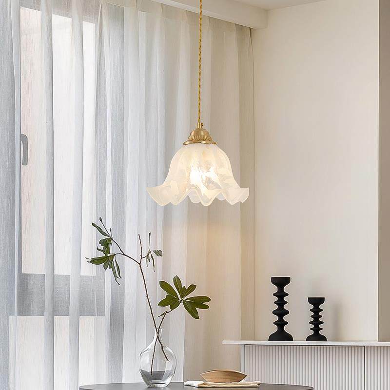 法式卧室床头花朵玻璃吊灯日式奶油一字餐厅饭桌店铺吧台吊灯三头