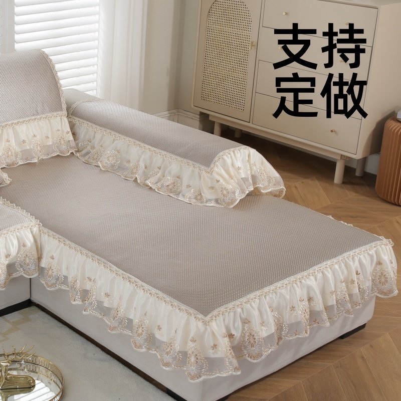 夏季冰藤沙发垫冰丝防滑蕾丝花边凉席垫子沙发套贵妃坐垫定做夏天
