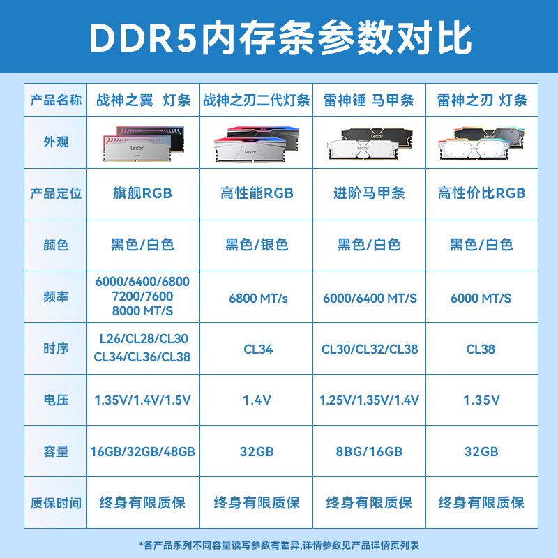 lexar雷克沙DDR5内存6000 6400 6800 32G套条16G双通道RGB台式机