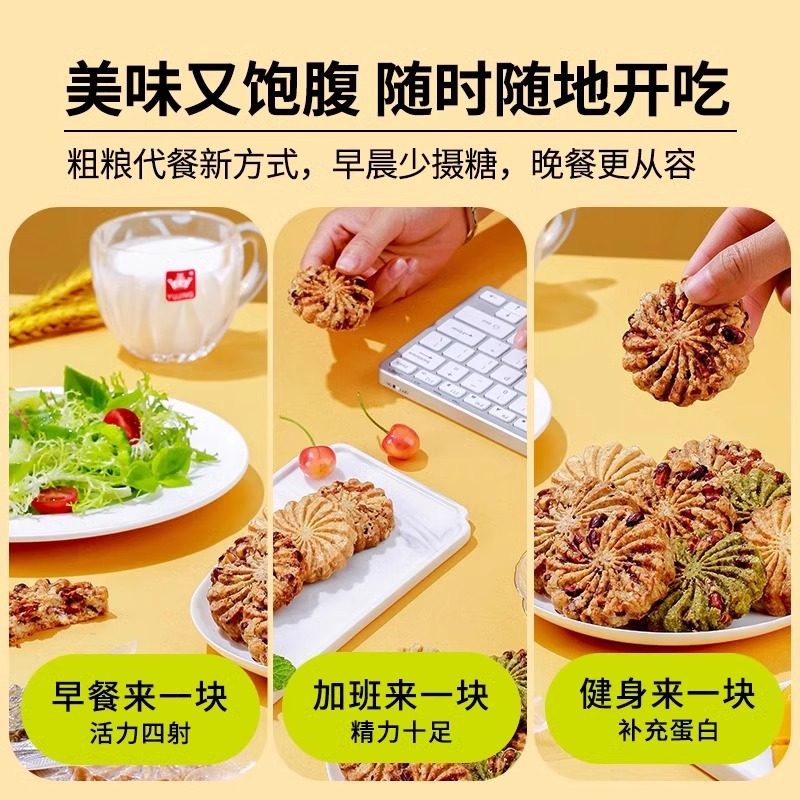 思朗纤麸粗粮消化饼干早餐木糖醇饼干五谷杂粮代餐零食整箱