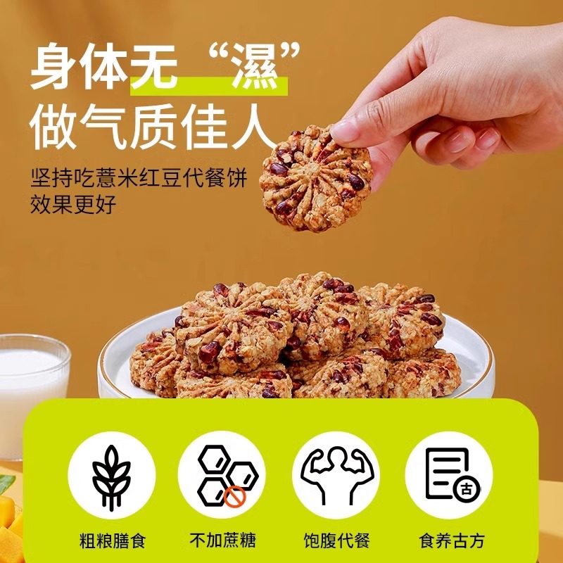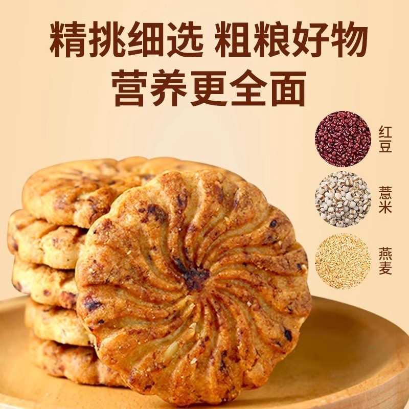 红豆薏米燕麦饼干早餐整箱压缩无糖精食品低粗粮饱腹代餐零食脂卡