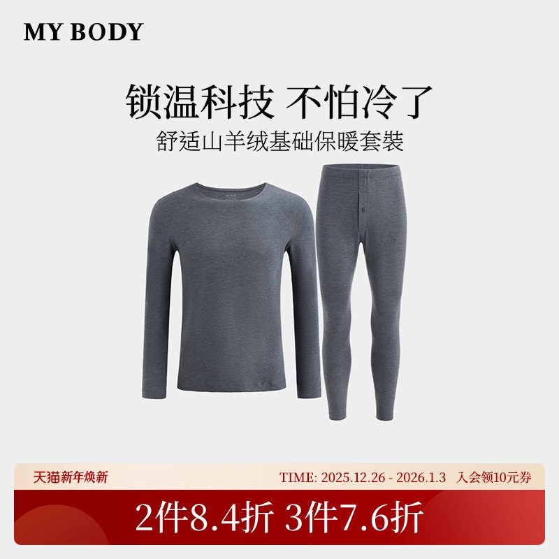 商场同款MYBODY冬季新款男士保暖套装舒适山羊绒基础贴身保暖内衣