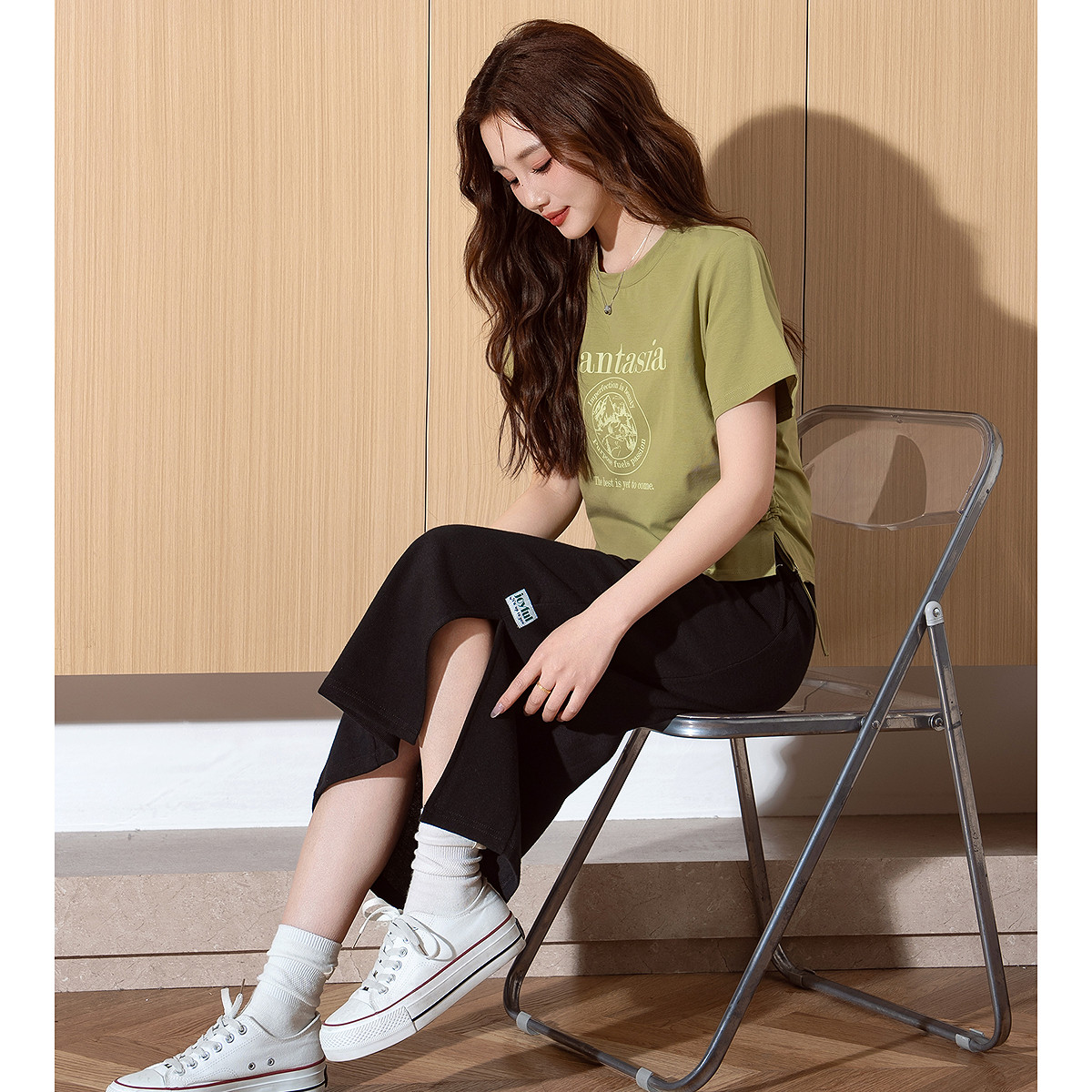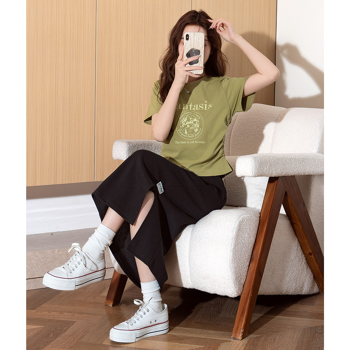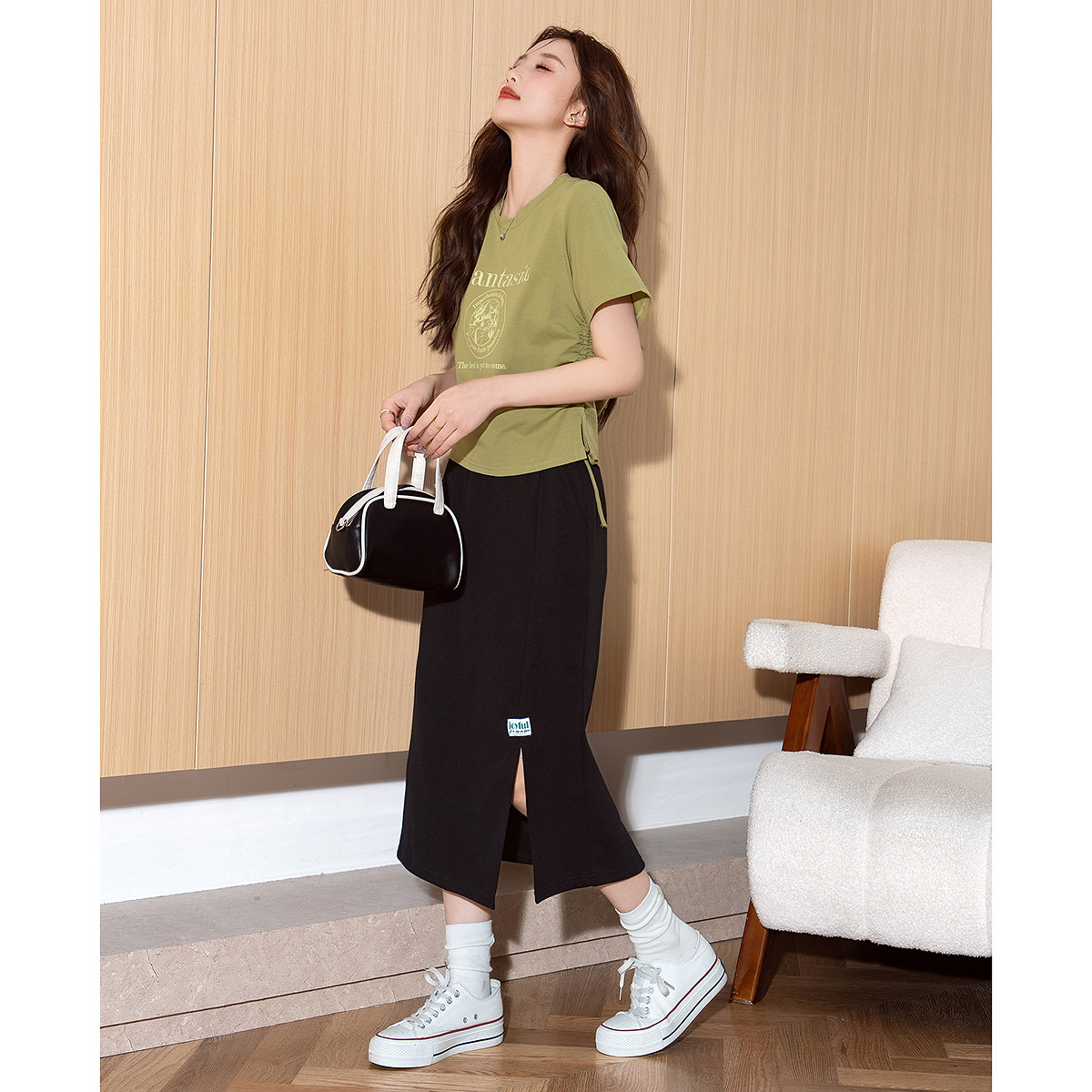 唐狮春夏季新款女圆领图案短袖T恤半身裙套装百搭减龄韩系套装