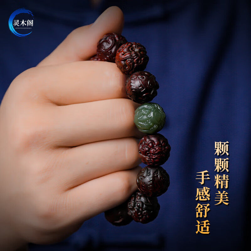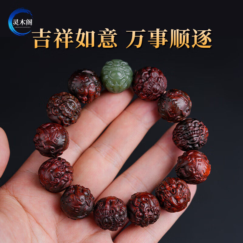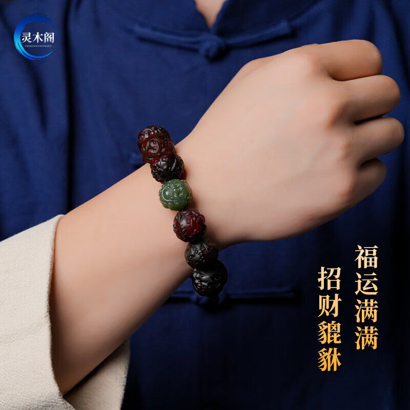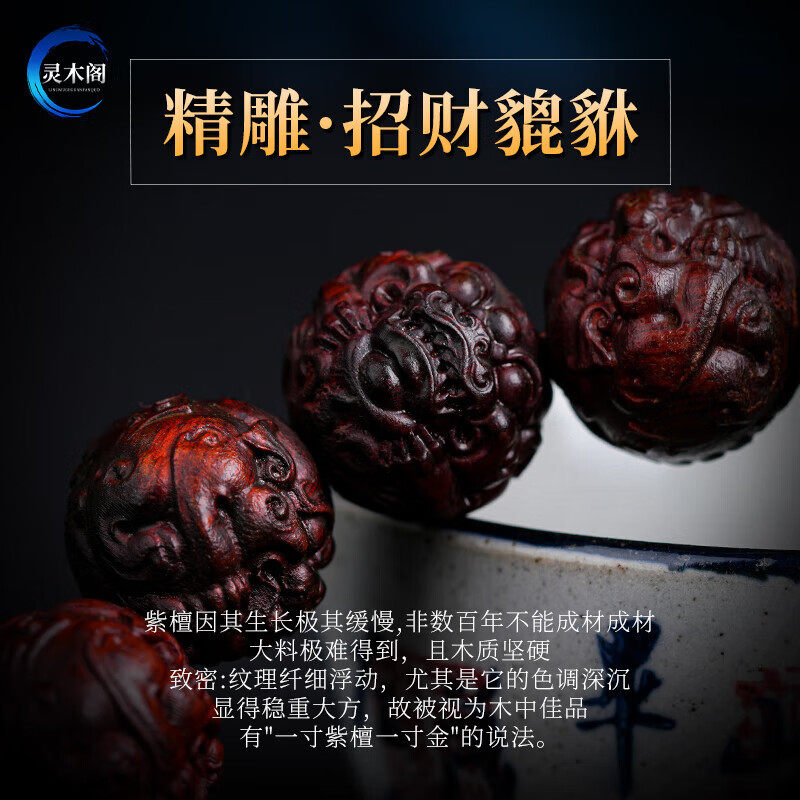 小叶紫檀貔貅手串男雕刻佛珠盘文玩手链木质手把件十二生肖招财