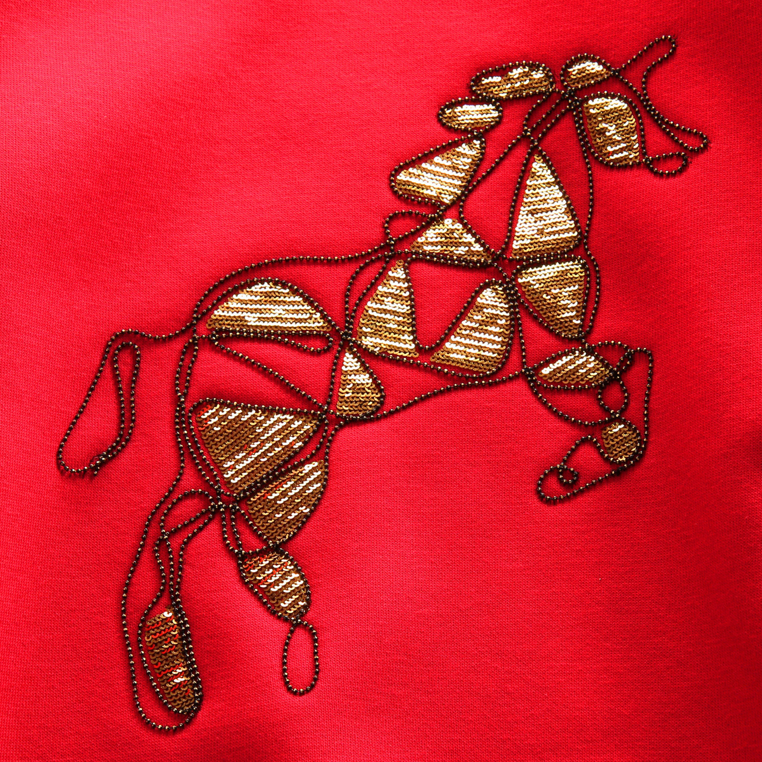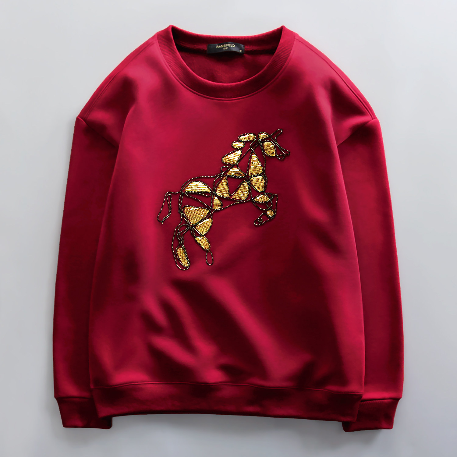 马年本命年刺绣卫衣男士中国风骏马红色上衣圆领加绒新年秋冬外套