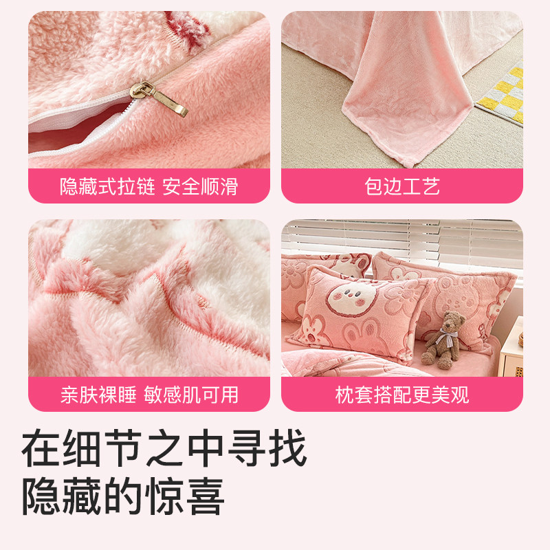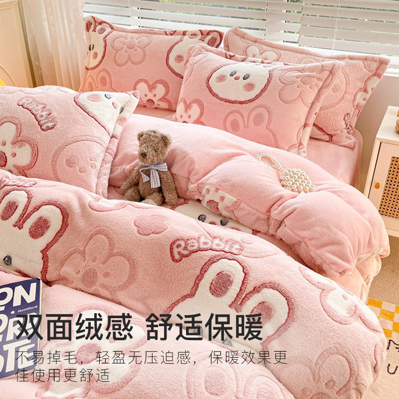 冬季加绒被套单件牛奶绒珊瑚绒宿舍单人单独毛绒被罩1.5米四件套3