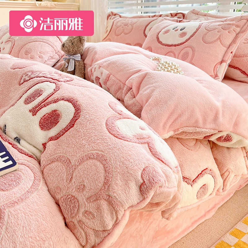 洁丽雅冬季加厚牛奶绒被套单件单人双人加绒珊瑚绒被罩150×200
